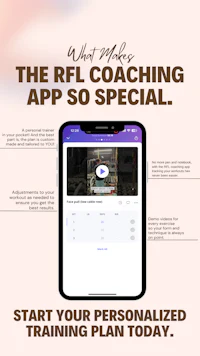 The personalized, RFL, month - month online coaching option is perfect for anyone who is ready to take their goals to the next level by getting detailed about their personal roadblocks. Your plan is custom made just for YOU!